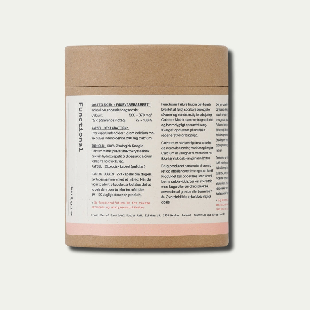 Strengthen your bones in a sustainable and natural way. Our Organic Calcium Bone Matrix contains natural calcium and trace minerals from grass-fed cattle raised on Nordic regenerative pastures.